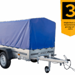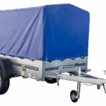 Pkw-Anhänger Garden Trailer 200 KIPP wird zusammen mit einer Hochplane in blauer Farbe, Hochspriegel sowie mit einem Stützrad geliefert. Die Hochplane mit dem Hochspriegel schützt transportierte Sachen vor Regen, Schnee, Wind und Sonne. Dieser Satz enthält: stabiler Spriegel, wasserdichte Plane und Rundknopf zur Befestigung des Expanderseils.