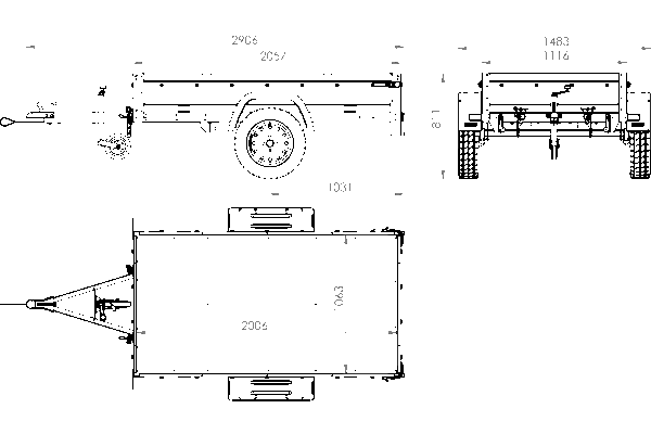 - Abmessungen des Anhängers: 2057 mm x 1116 mm