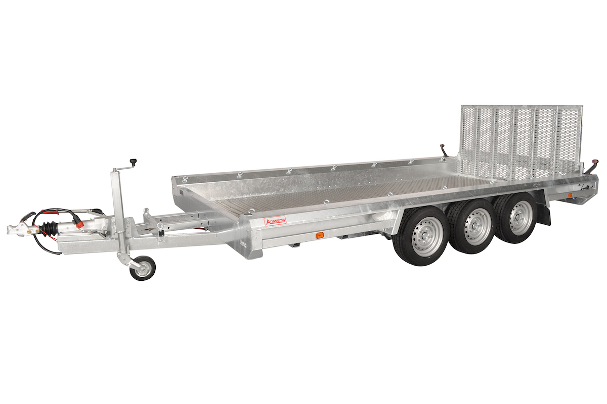 Der ANSSEMS TERRAX Basic ist ein robuster und funktioneller Minibaggertransporter. Die Basis bildet ein starkes und stabiles geschweißtes Fahrgestell. Die niedrige Ladeflächenhöhe und eine lange, stabile Auffahrklappe gewährleisten einen kleinen Auffahrwinkel. Serienmäßig ausgestattet mit Boden aus Alupofil, Auffahrklappe (100 cm) über komplette Breite mit Torsionsfedern und integriertem Stützbügel, Schaufelablage, 14 Bindeösen, integrierter Seitenbeleuchtung und Automatikstützrad.