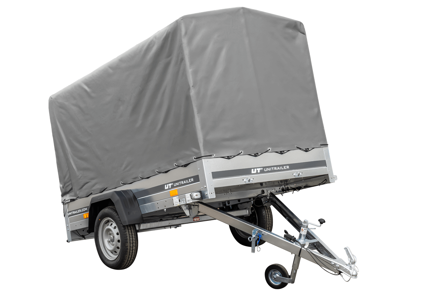 - FAHRWERK – Lenkachse von den Herstellern Knott oder AL-KO – Sonderbestellung auf Anfrage Unitrailer. Radgröße: 155/70 R13. Kippbare V-Deichsel, die jederzeit unter der Bodenplatte des Anhängers eingeklappt werden kann.