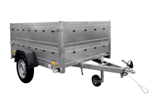 , was das Be- und Entladen in wenigen Minuten ermöglicht. Durch die Verwendung kippbarer Deichsel kann sie senkrecht auf der Rückwand platziert werden. Alle Formalitäten, die mit dem Kauf verbunden sind, machen wir für Sie. Der Anhänger wird zusammen mit den Zulassungsunterlagen innerhalb von 5 Werktagen an die von Ihnen angegebene Adresse geliefert.